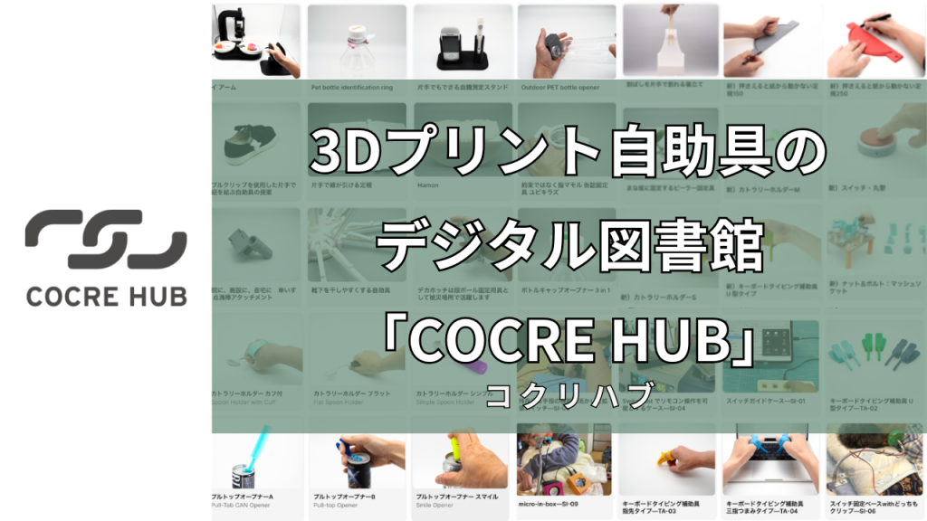 3Dプリント自助具のデジタル図書館『COCRE HUB』は、世界中の自助具データを共有し、誰もが自分に合った道具を100円程度の材料費で手に入れられるプラットフォームです。