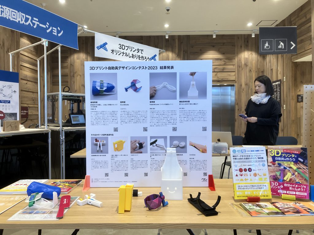 無印良品 板橋南町22 店の周年祭で 3D プリント自助具デザインコンテスト 2023 の優秀作品を展示しました (2023.12.02-03)