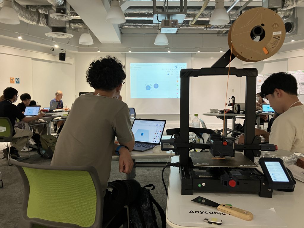 会場となった SHIP (品川産業支援交流施設) 持ち込んだ 5 台の 3D プリンタを活用して、座学・ハンズオンに取り組んでいただきました。